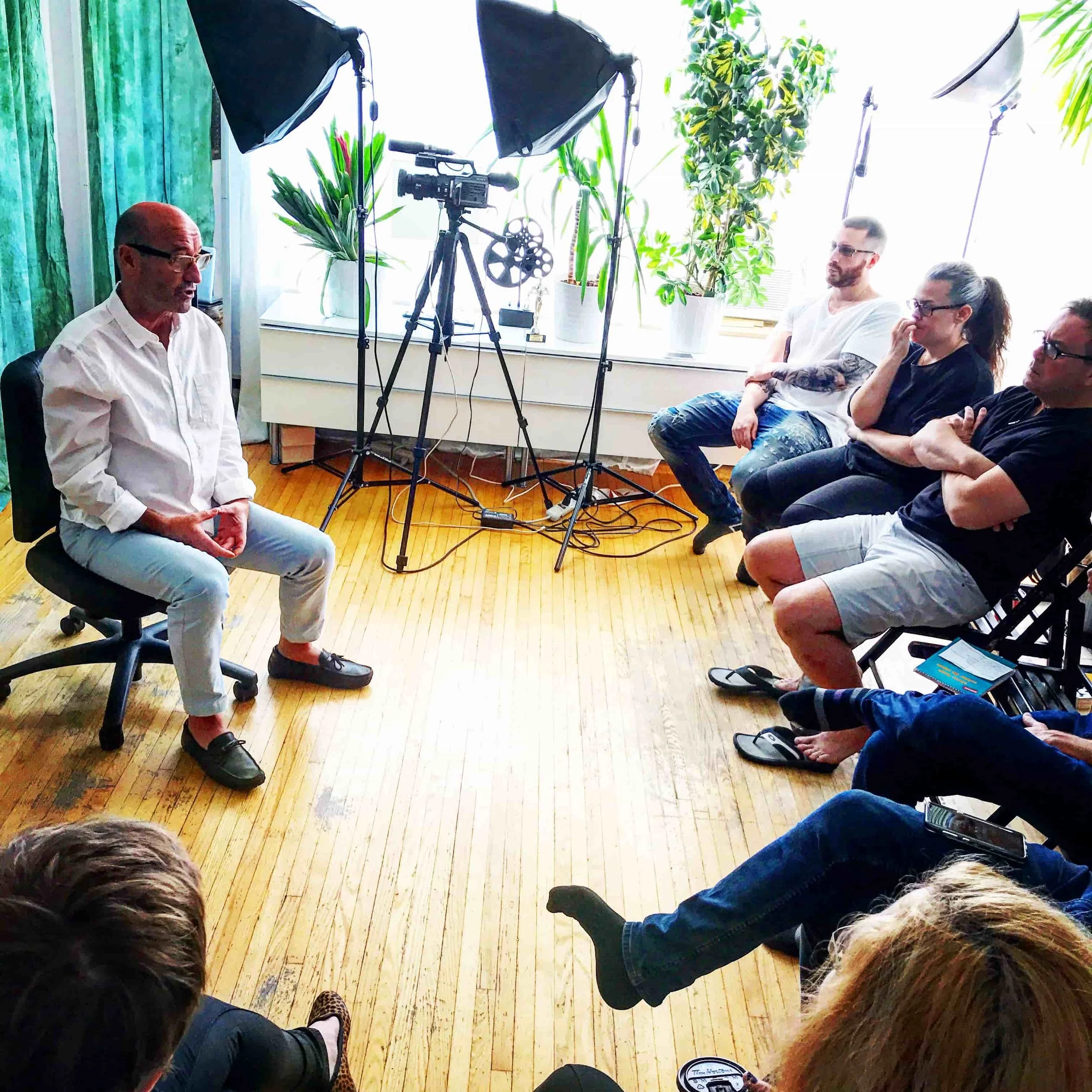 In this Scene-study class, we're preparing and taping scenes, telling compelling stories, reviewing foundational process preparation techniques, with a focus on screen acting skills and technique, using 2 cameras.